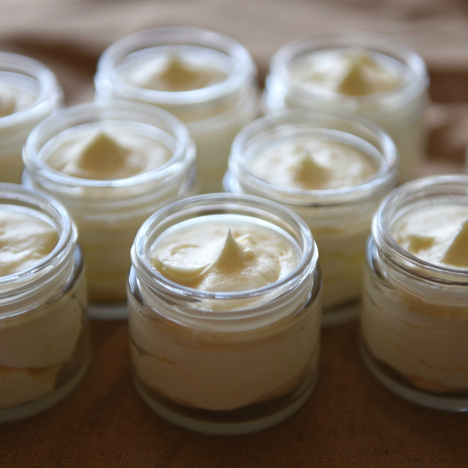 The creamy lotion is piped into individual jars & labeled...ready to mail to your doorstep!