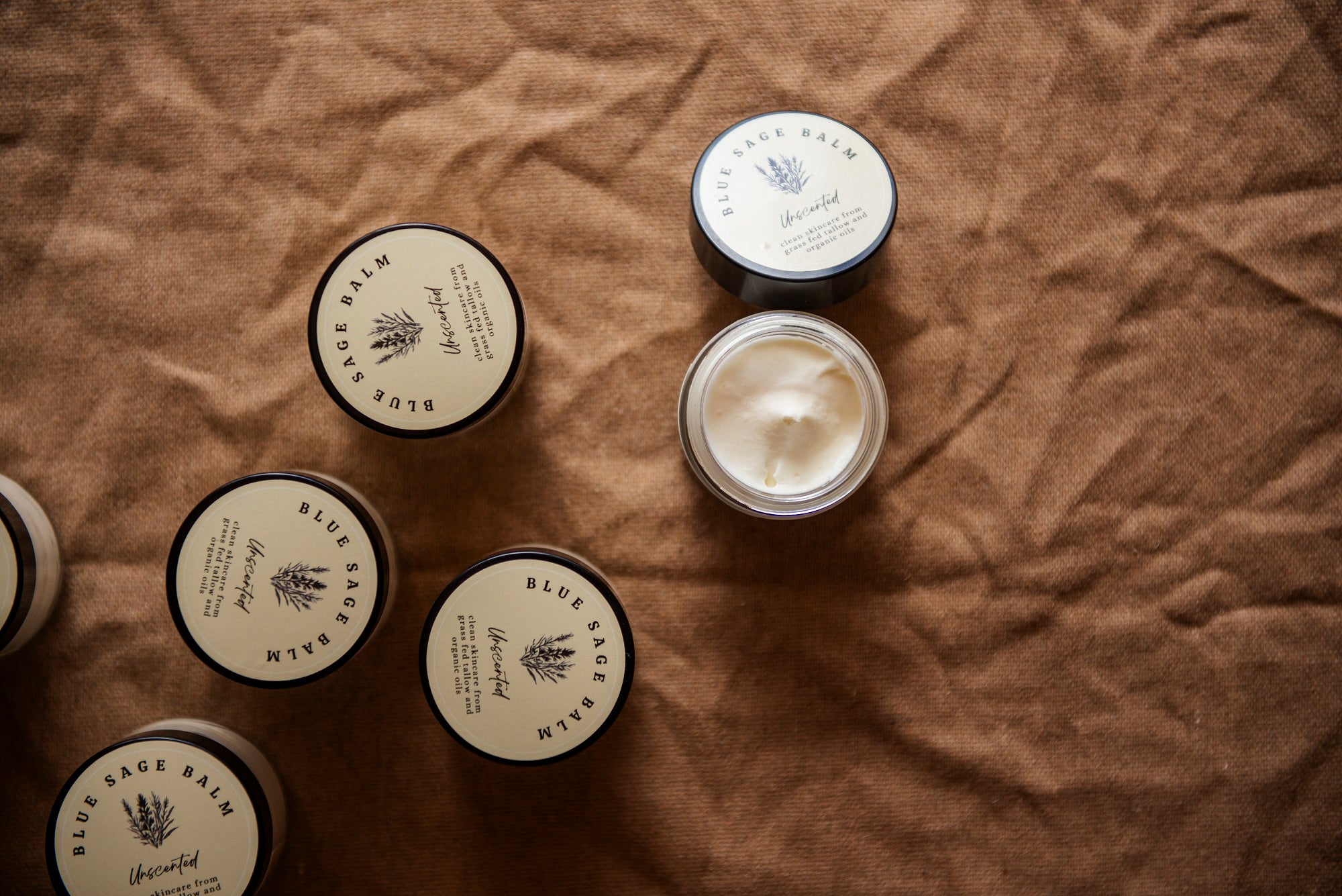 We whip the rendered tallow with high quality cold-pressed organic jojoba and grapeseed oil (these oils make the tallow, which is hard at room temperature, into a creamy lotion while also being great for your skin!). We then add essential oils...or leave it unscented!
