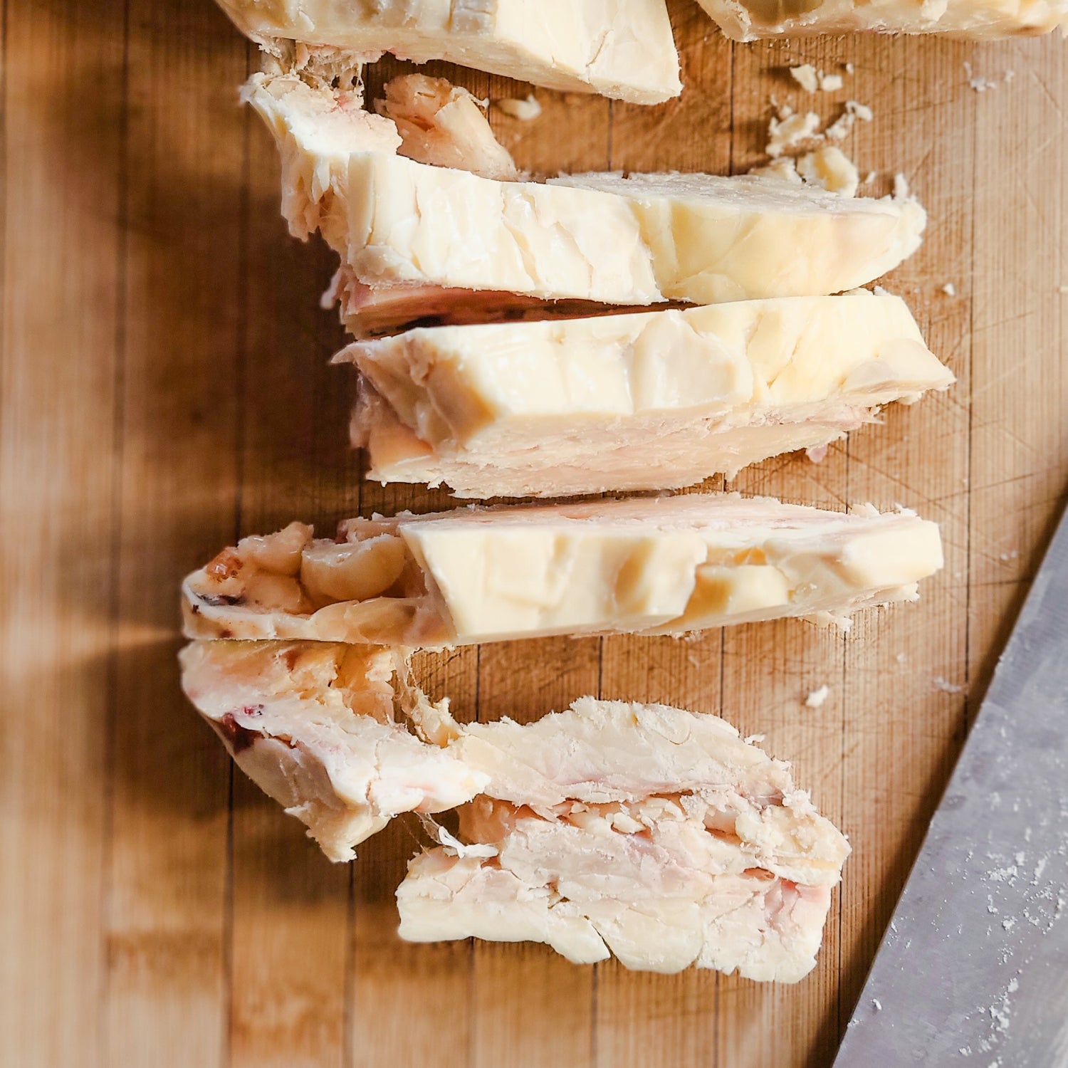 Our rendering process takes 3 days. We slowly melt the beef fat at very low temperatures in order to not burn it, and strain it 3 times through a fine cloth strainer before it's finally ready to become lotion.